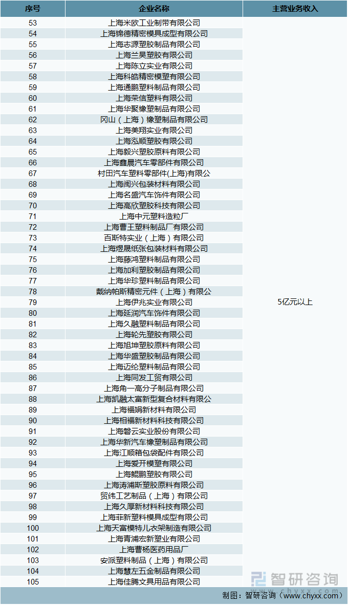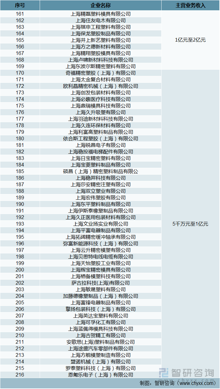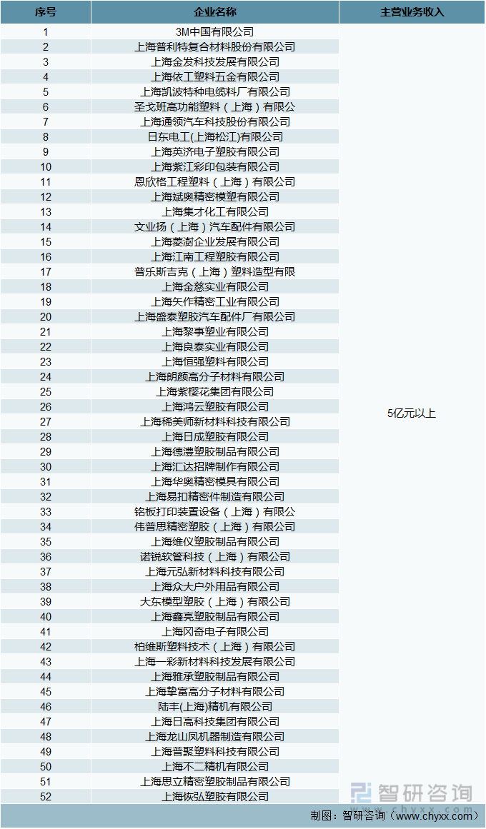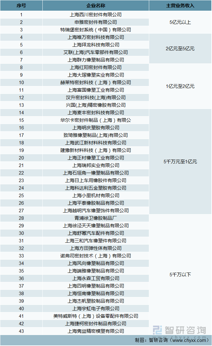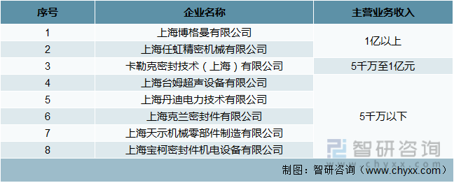 附:以下为上海市密封行业企业主营业务收入排名
