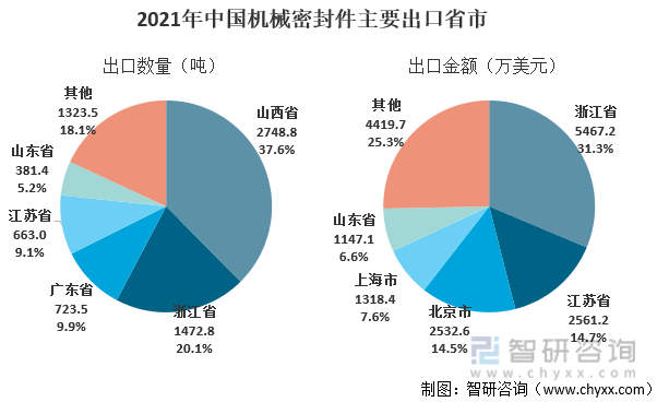 2021年中国机械密封件主要出口省市