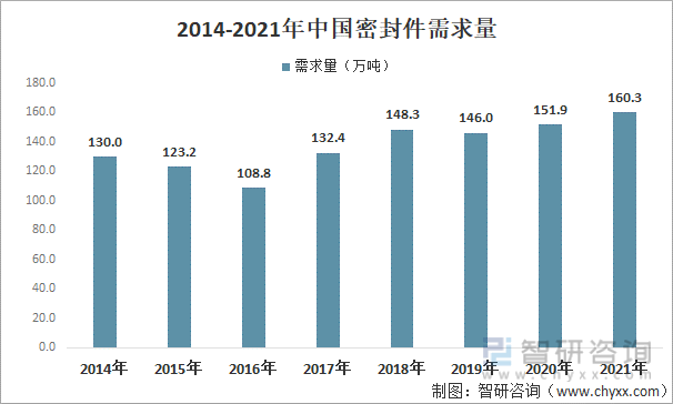 2014-2021年中国密封件需求量