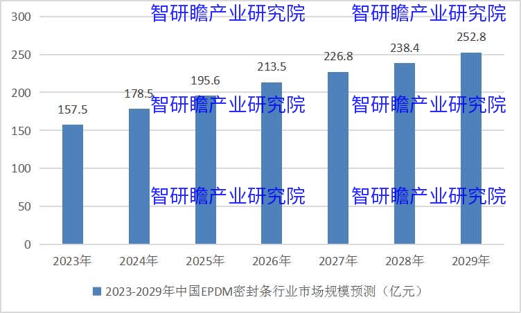 预测,2029年中国EPDM密封条行业市场规模252.8亿元。2023-2029年中国EPDM密封条行业市场规模预测如下:
